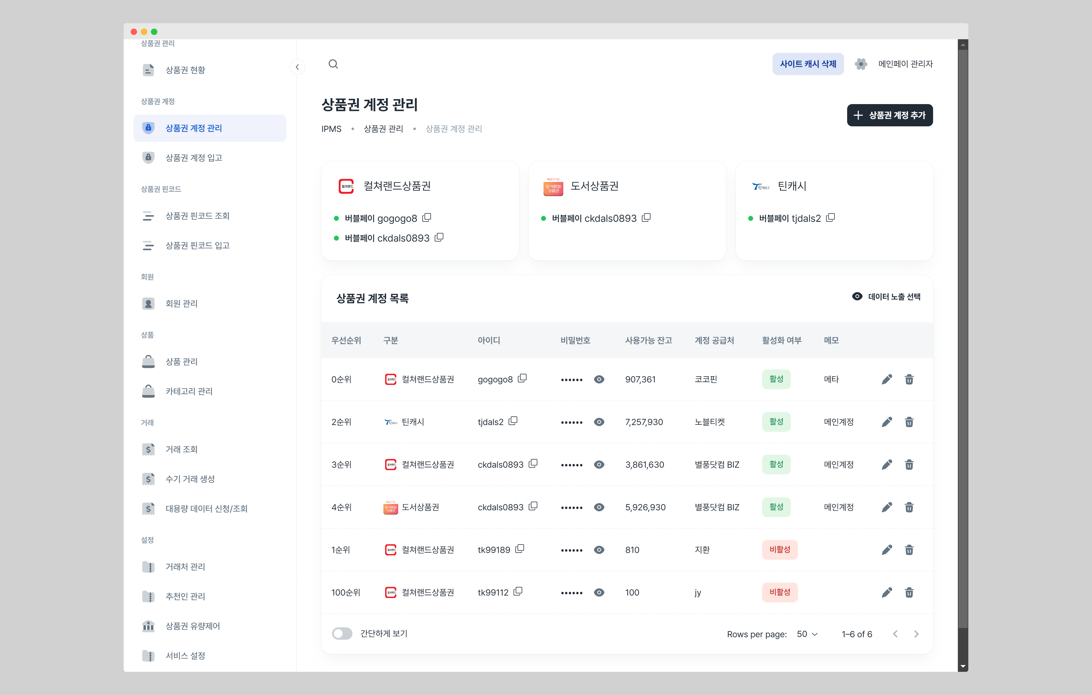 클릭 몇번으로 간편하게 충전 🔋별풍선 교환권, 모바일, 온라인 상품권 결제 등 상품권 매매 사업자들의 서비스 내부 업무 및 대고객 판매 업무를 자동화할 수 있는 시스템 통합을 구현했습니다.